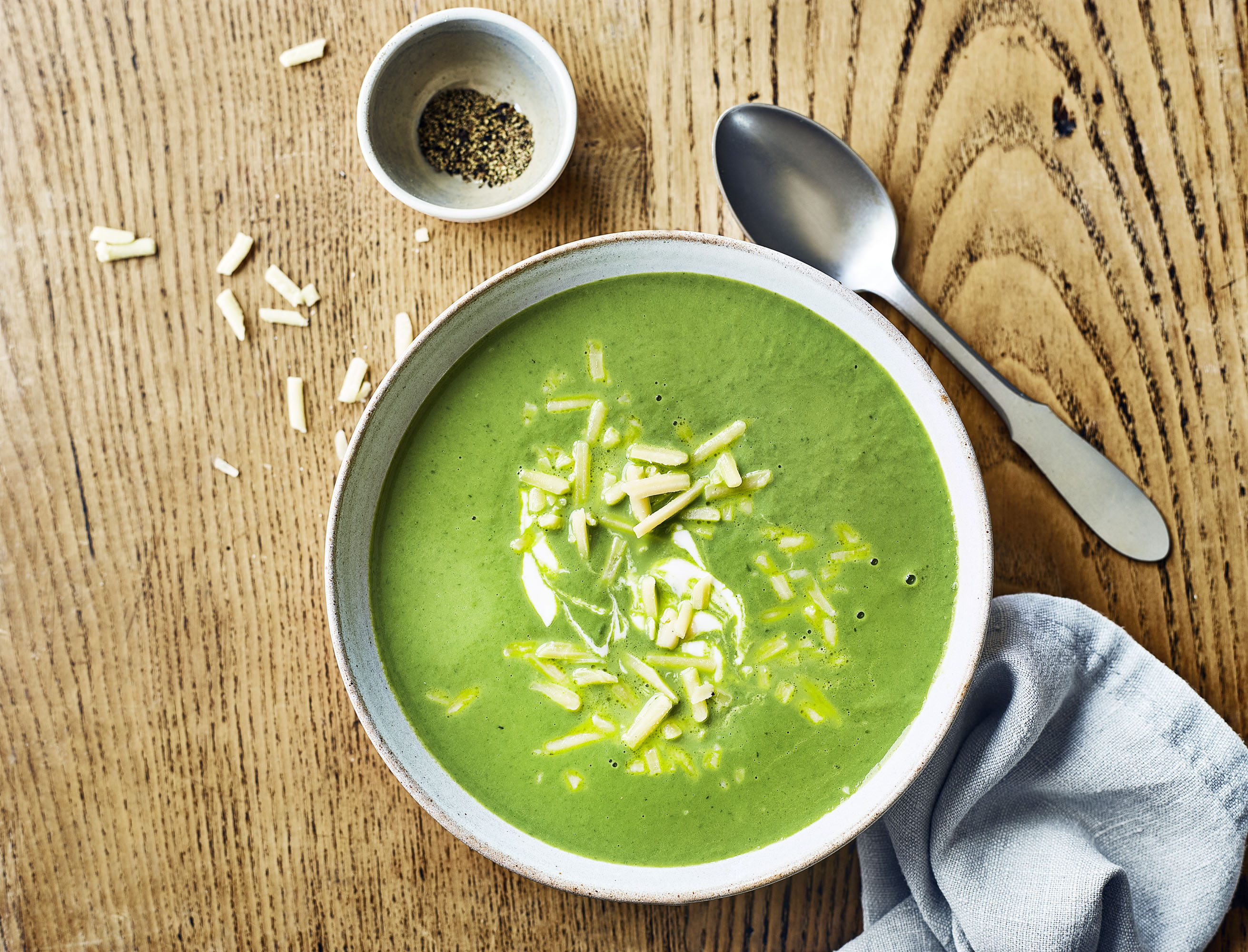Add the broccoli and milk then simmer for 5 minutes until the broccoli is soft. Remove from the heat, season to taste then pour everything into a liquidiser and blend until smooth. Pour into a warm soup bowl, top with the cheddar and yoghurt then serve.